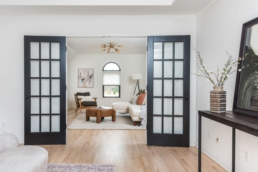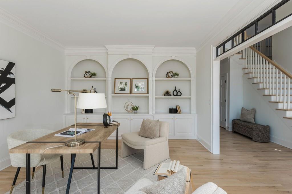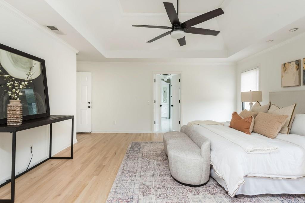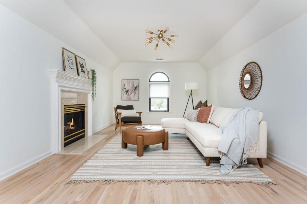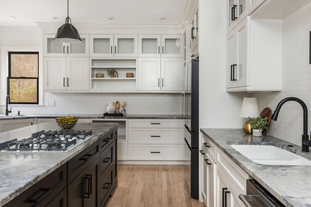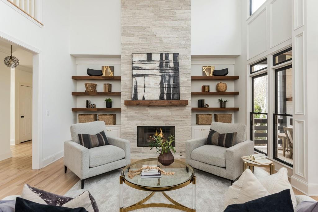 Discover this captivating residence in White Columns Country Club, where modern enhancements and meticulous care create a standout home in a picturesque natural town setting. Set on a highly desirable level lot, the incredibly private backyard boasts flat, lush grass and a new Trex deck with an awning-perfect for outdoor entertaining. Inside, gleaming hardwood floors guide you to a breathtaking chef's kitchen featuring quartzite counters and abundant storage that overlooks a stunning great room. The main level also offers a spacious guest suite, while upstairs, you'll find three bedrooms plus a luxurious master retreat that showcases an elegant tray ceiling and an additional flex space ideal for a home office or relaxation area. The primary bath is equally impressive, with double vanities, a soaking tub, and a large walk-in shower. Finished lower level-including one bedroom plus a versatile room that can serve as a seventh bedroom-a wet bar, media room, and so much more, this home has it all! Located on a quiet street just a short walk to the pool, tennis courts and golf club and zoned for award-winning schools, this exceptional property truly stands out!